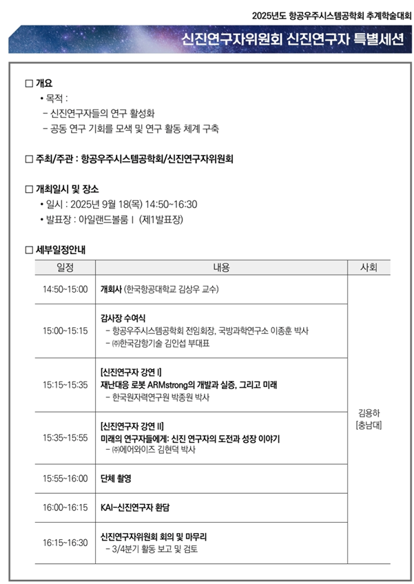 2025³âµµ Ç×°ø¿ìÁֽýºÅÛ°øÇÐȸ Ãß°èÇмú´ëȸ ½ÅÁø¿¬±¸ÀÚÀ§¿øÈ¸ ½ÅÁø¿¬±¸ÀÚ Æ¯º°¼¼¼Ç